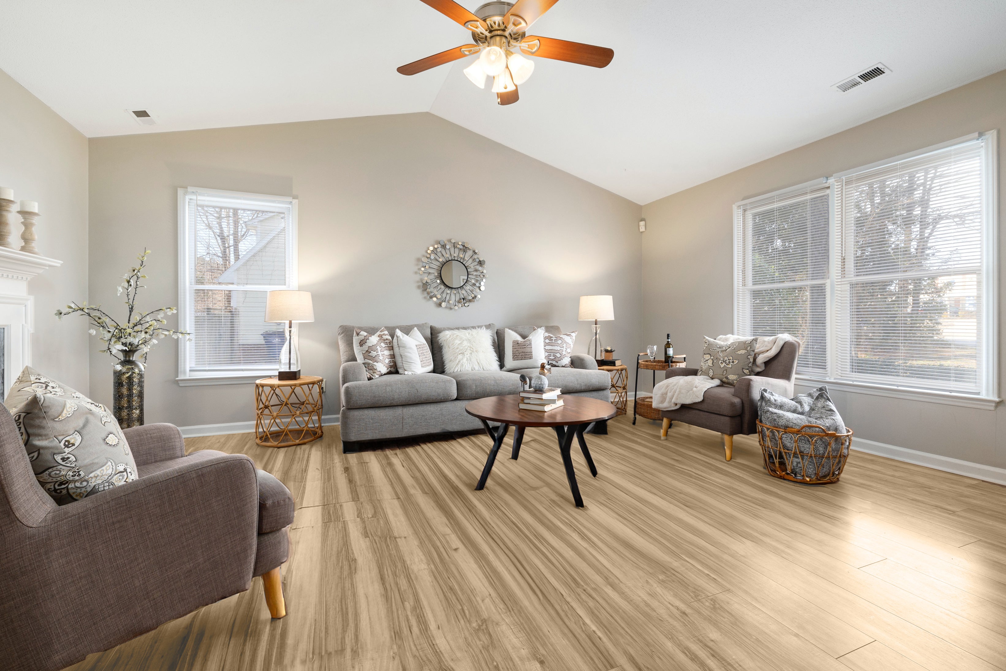 El piso SPC (Stone Plastic Composite) se caracteriza por su núcleo rígido de piedra caliza y polímero, lo que lo convierte en uno de los vinílicos más resistentes y estables del mercado.