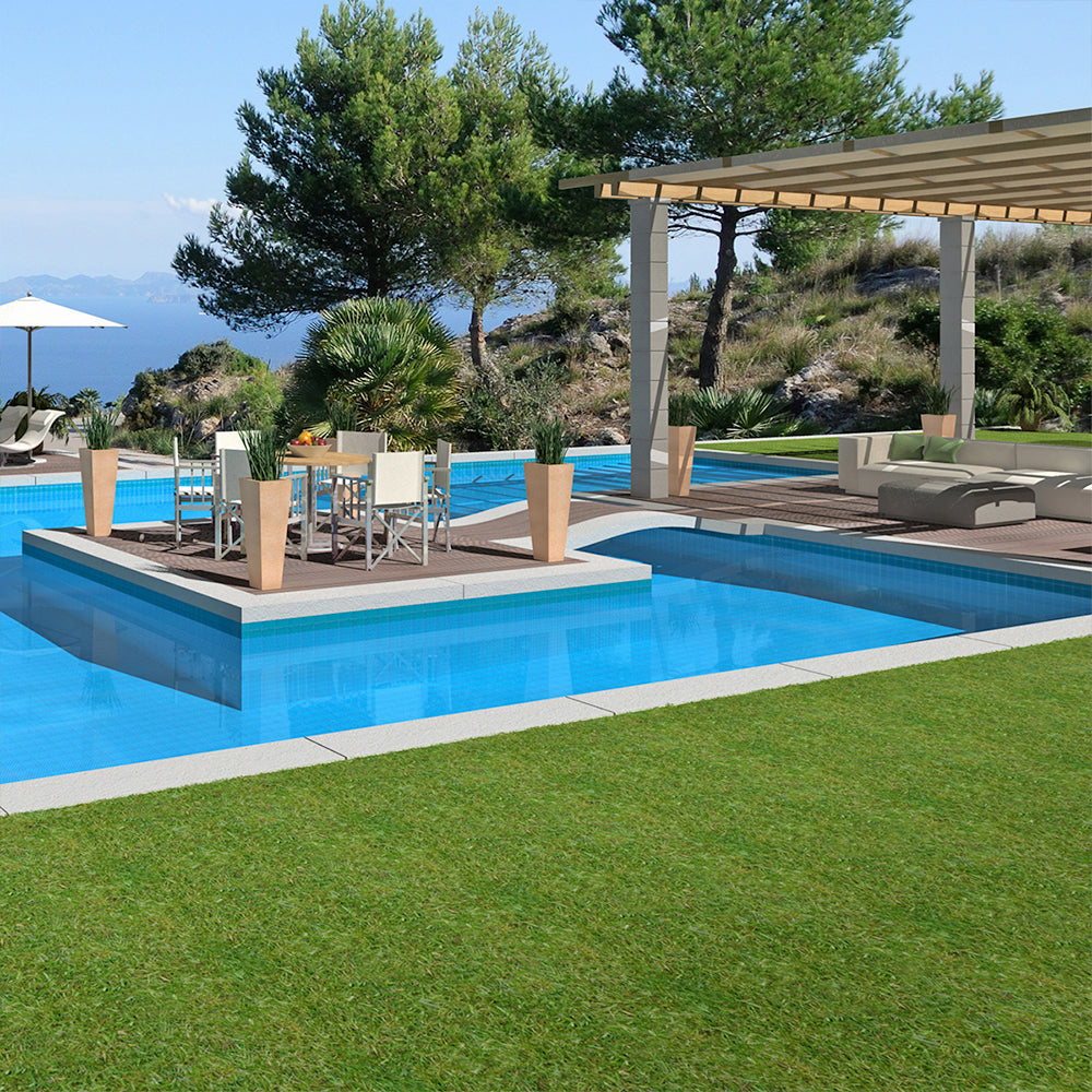 Fabricado 100% con tejido monofilamento de Polipropileno y una sólida base de Látex, ofrece una durabilidad y resistencia ideales para Jardines, terrazas, camellones, azoteas y áreas de juego en escuelas. Su altura de 20 mm le confiere un aspecto denso y confortable.